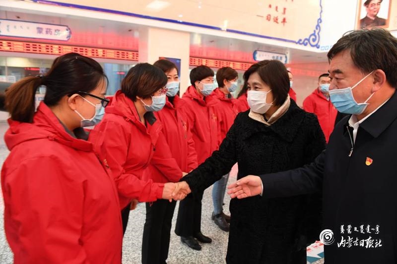 在烏蘭察布市蒙中醫(yī)院,布小林看望慰問了援鄂醫(yī)務(wù)工作者。醫(yī)院16名醫(yī)護人員是烏蘭察布市首批支援湖北的逆行者,2020年1月28日奔赴湖北,在荊門市第一人民醫(yī)院、鐘祥市同仁醫(yī)院等醫(yī)療機構(gòu)奮戰(zhàn)50多天。布小林與他們一一握手表達敬意和感謝。她動情地說,你們在最危急的時刻挻身而出,義無反顧沖向抗疫一線,頑強拼搏,無私奉獻,圓滿完成援鄂任務(wù),每一個人都非常了不起。目前的疫情防控形勢依然嚴峻復(fù)雜,希望大家繼續(xù)忠實履行醫(yī)務(wù)工作者的神圣職責(zé),同時要加強個人防護。她要求醫(yī)院精心做好內(nèi)部疫情防控工作,關(guān)心關(guān)愛醫(yī)護人員的身心健康。