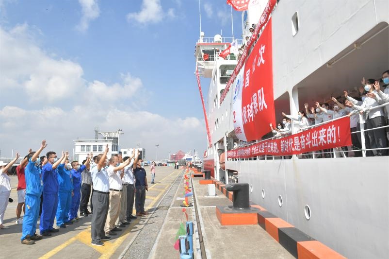 人們在上海國內(nèi)基地碼頭歡迎“雪龍2”號科考破冰船返航。自然資源部供圖
