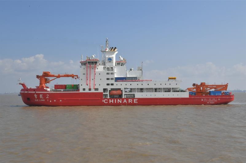 “雪龍2”號總長約122米,寬約22米,設(shè)計排水量近1.4萬噸,續(xù)航力達到2萬海里,是中國第一艘自主建造的極地科學考察破冰船,也是世界上首艘具備雙向破冰能力的破冰船。