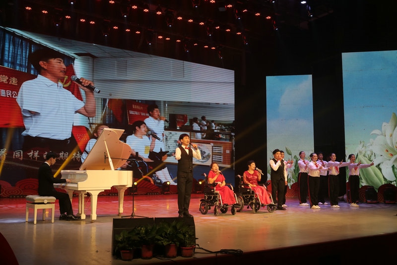 跟黨走·內(nèi)蒙古自治區(qū)殘疾人聯(lián)合會慶祝建黨100周年全區(qū)殘疾人文藝演出”,在呼和浩特市舉辦。來自全區(qū)各級殘聯(lián)組織的近200名殘疾人演員和中國殘疾人藝術團的演員們?yōu)楝F(xiàn)場及網(wǎng)絡直播的觀眾們帶來了一場規(guī)模宏大、精彩紛呈視聽盛宴。