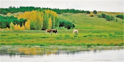 “秋天的草原更令人迷醉。絲絲涼風(fēng),清爽宜人,湛藍(lán)天空,明靜高遠(yuǎn),柔美蜿蜒的莫日格勒河,悠然自得的牧馬生活,最讓我難忘的是呼倫貝爾的綠?!贝筮B的王女士帶著父母和孩子自駕游呼倫貝爾,從森林到草原,一路尋綠穿行。