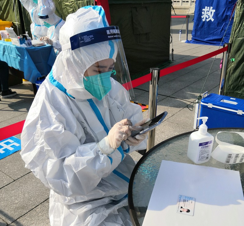 “昨天分配的任務(wù)是信息采集,因?yàn)榈诙喓怂釞z測(cè)要使用新的采集系統(tǒng),所以今天早晨7:00到崗后,大家開(kāi)始學(xué)習(xí)信息采集系統(tǒng)的使用。信息采集不能出任何差錯(cuò),每一個(gè)信息采集員都很緊張,謹(jǐn)慎操作每一步?!痹诤艉秃铺厥杏袢獏^(qū)大召社區(qū)核酸檢測(cè)點(diǎn)參加志愿服務(wù)的張華媛說(shuō),8:00準(zhǔn)時(shí)開(kāi)始第二次核酸檢測(cè),直到下午2:00換崗,連續(xù)6小時(shí)緊張謹(jǐn)慎的信息采集,中途沒(méi)有休息過(guò),整個(gè)身體感覺(jué)有點(diǎn)僵了。雖然很累,但是能成為抗疫戰(zhàn)士中的一員,和醫(yī)護(hù)人員、社區(qū)工作者及其他志愿者一起為呼和浩特抗疫貢獻(xiàn)自己的一份力,是一件非常有意義的事。