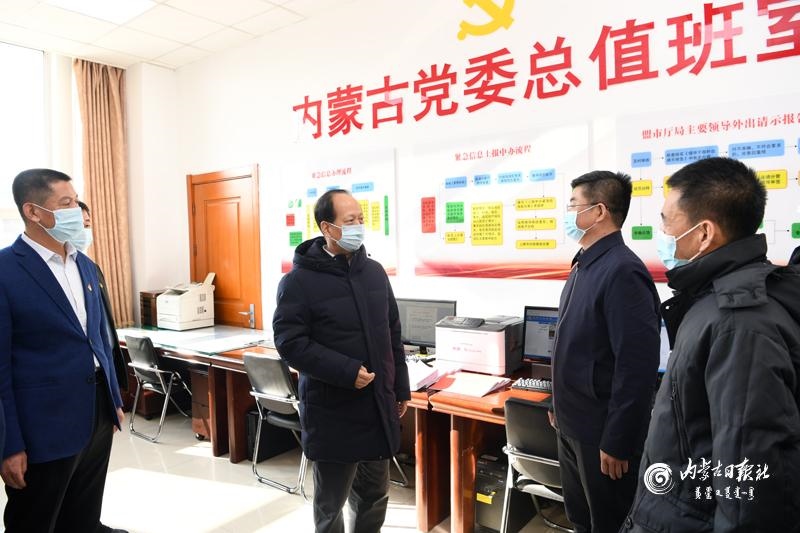 1月31日,自治區(qū)黨委書記、人大常委會主任石泰峰,來到自治區(qū)黨委總值班室檢查指導(dǎo)全區(qū)政務(wù)值班情況。內(nèi)蒙古日報社融媒體記者袁永紅攝