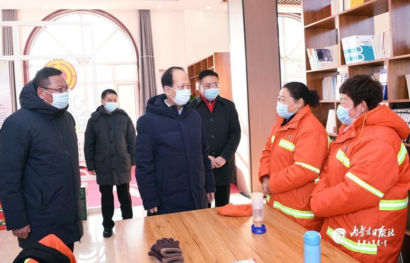 1月31日,自治區(qū)黨委書記、人大常委會主任石泰峰,來到呼和浩特市新城區(qū)體育場環(huán)衛(wèi)休息站,向春節(jié)期間值守工作崗位的環(huán)衛(wèi)工人送上新春祝福。內(nèi)蒙古日報社融媒體記者袁永紅攝