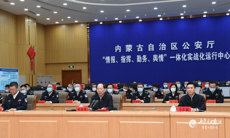 1月31日,自治區(qū)黨委書記、人大常委會主任石泰峰,來到自治區(qū)公安廳一體化實戰(zhàn)運(yùn)行中心,檢查指導(dǎo)自治區(qū)服務(wù)保障北京冬奧會安保執(zhí)勤工作。內(nèi)蒙古日報社融媒體記者袁永紅攝