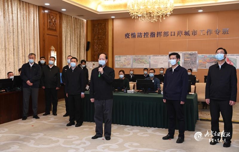 1月31日,自治區(qū)黨委書記、人大常委會主任石泰峰,在自治區(qū)新冠肺炎疫情防控指揮部檢查指導(dǎo)春節(jié)和北京冬奧會期間疫情防控工作。內(nèi)蒙古日報社融媒體記者袁永紅攝