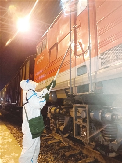 田潤(rùn)澤告訴記者,“通過‘無(wú)接觸’查驗(yàn)、磁條封控車門,避免了跨境列車司機(jī)與邊檢、海關(guān)工作人員的直接接觸,最大限度降低交叉感染的風(fēng)險(xiǎn),確保司機(jī)在國(guó)內(nèi)停留的數(shù)小時(shí)內(nèi)不下車、不與外界接觸?!?/p>