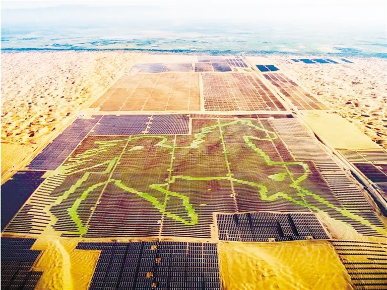 駿馬奔騰似潮涌,一日千里獨行空。庫布其沙漠腹地,由196320塊藍(lán)色光伏板組成的駿馬圖栩栩如生,格外吸睛。內(nèi)蒙古現(xiàn)代能源經(jīng)濟(jì),一如這昂首奔騰的駿馬,向著“雙碳”目標(biāo)奮蹄疾馳。(記者 許曉嵐 康麗娜)