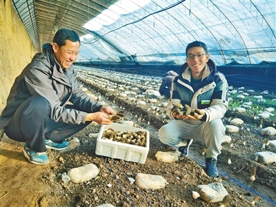 呼和浩特市科技特派員通過(guò)合作社規(guī)?;N植特色食用菌羊肚菌。