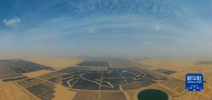 鄂爾多斯市庫布其沙漠深處,由近20萬塊深藍(lán)色光伏板構(gòu)成的巨型駿馬圖令人震撼,不少“拍客”慕名而來。這處駿馬光伏電站相當(dāng)于180多個標(biāo)準(zhǔn)足球場大小,板上發(fā)電、板下種植,既利用豐富的太陽能資源,又推動沙漠生態(tài)治理。