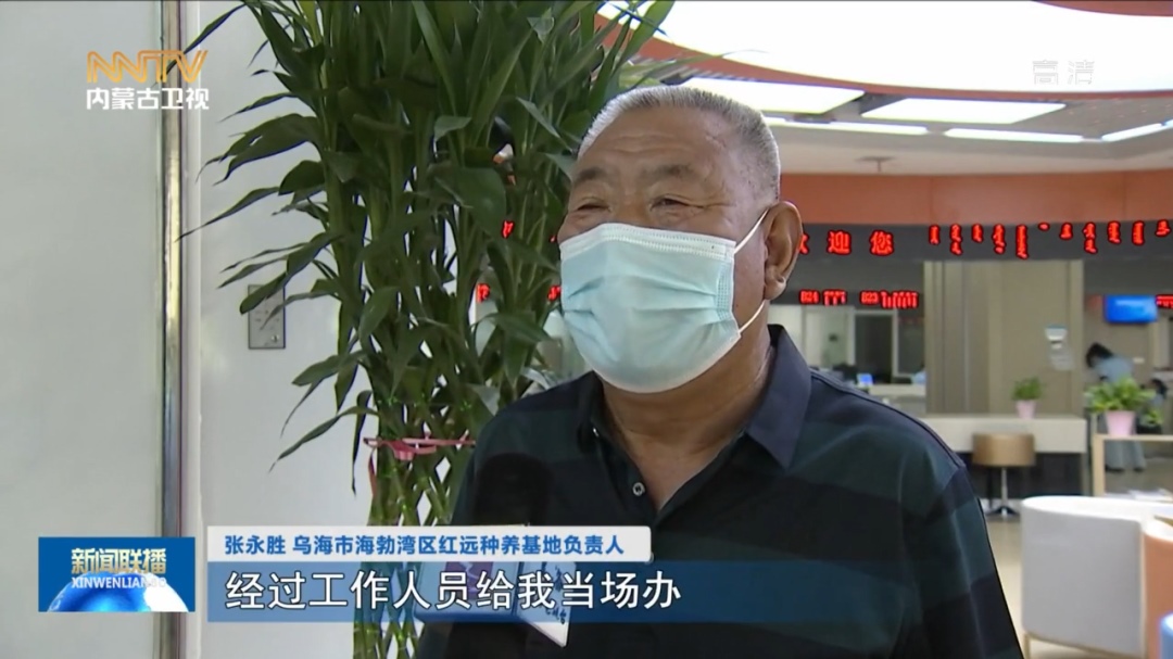 張永勝 烏海市海勃灣區(qū)紅遠(yuǎn)種養(yǎng)基地負(fù)責(zé)人  我原來想的辦這個(gè)東西挺費(fèi)勁,經(jīng)過工作人員給我當(dāng)場辦,比我想象的還要快,我非常高興。