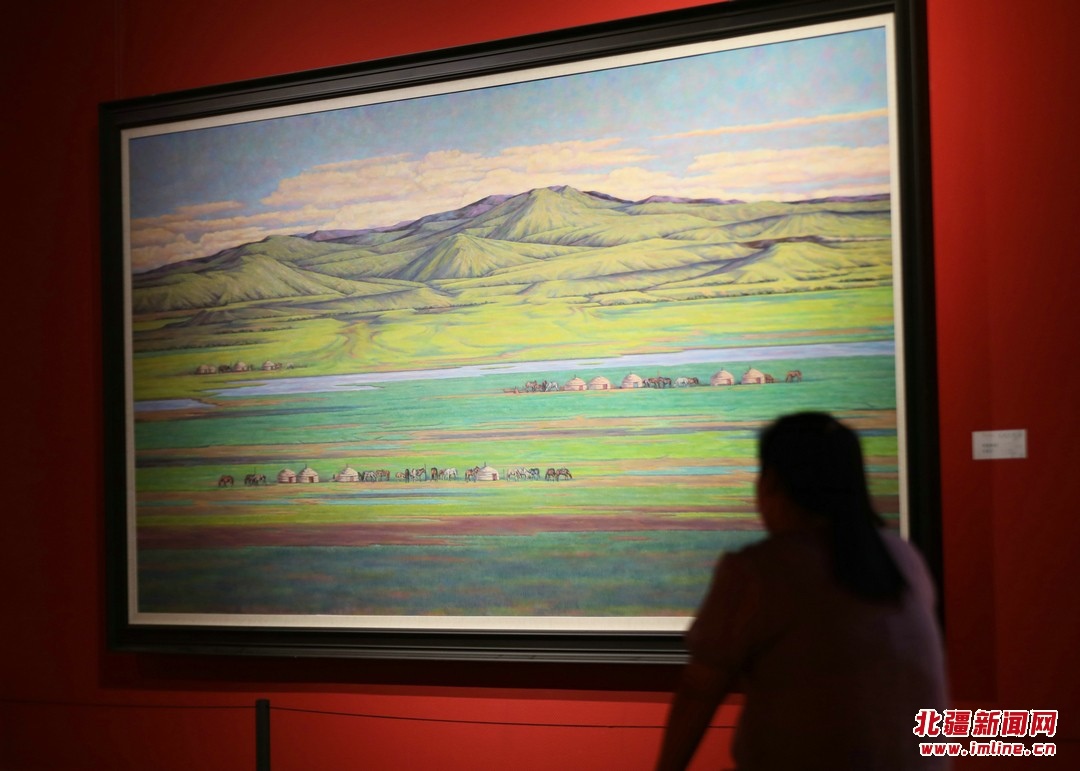 “美麗中國·內(nèi)蒙古形象”主題美術(shù)作品展聚焦“兩個打造”,119幅美術(shù)作品以全區(qū)12個盟市獨特的自然風光、人文景觀、生態(tài)面貌為底色,描繪內(nèi)蒙古草之茂、林之郁、湖之美、水之秀、田之沃、沙之魅,全面展示了內(nèi)蒙古真善美的形象。