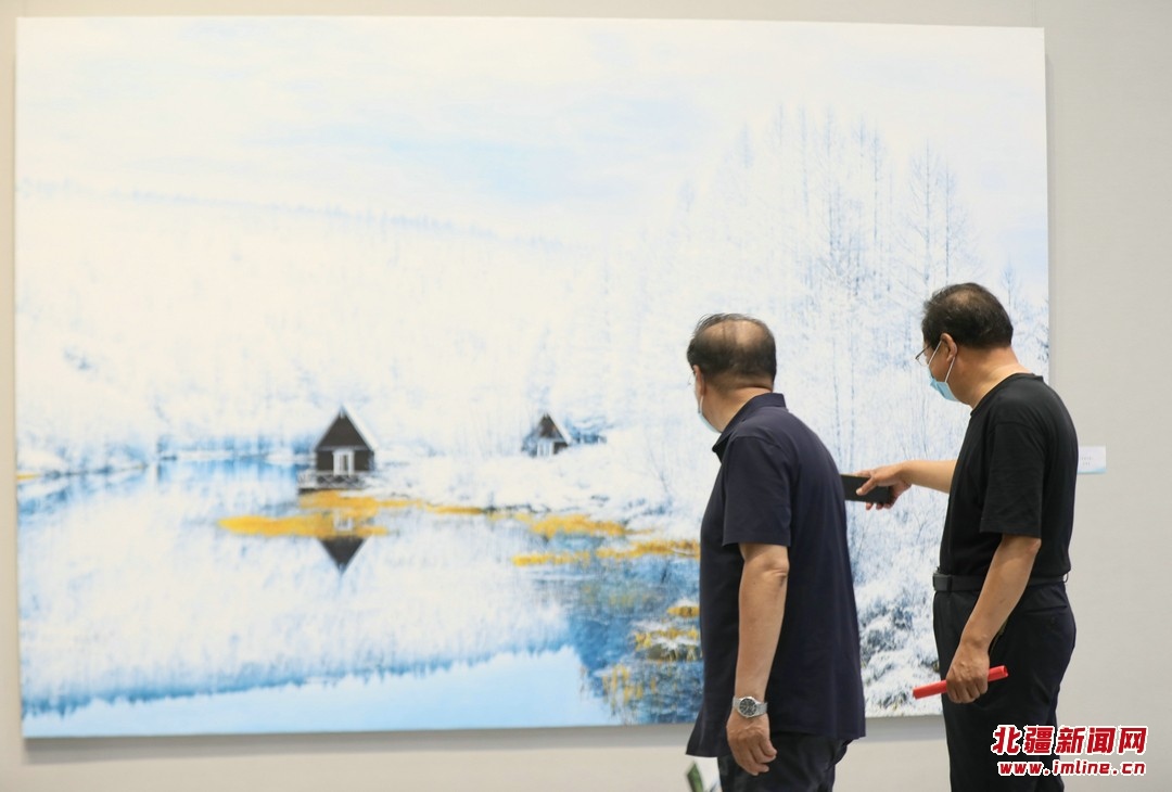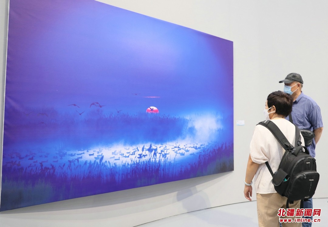 觀眾在參觀內(nèi)蒙古風光攝影展
