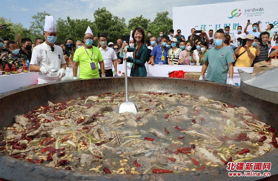 展會(huì)現(xiàn)場(chǎng)一口大鍋燉20只羊供人品嘗,吸引了眾多市民和與會(huì)者  記者 張楊攝影