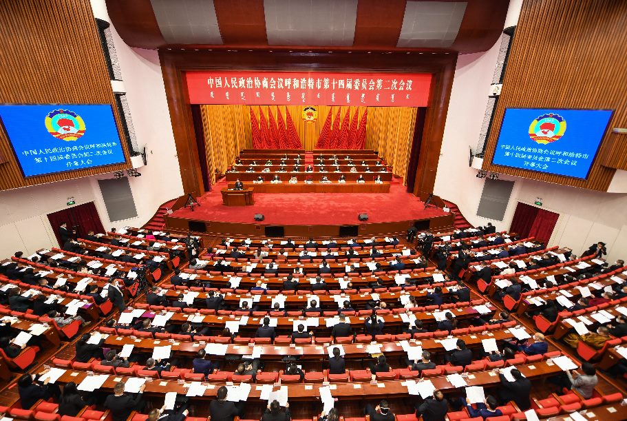 呼和浩特市政協(xié)十四屆二次會(huì)議開幕大會(huì)現(xiàn)場。新華網(wǎng) 發(fā)(王劭凱 攝)