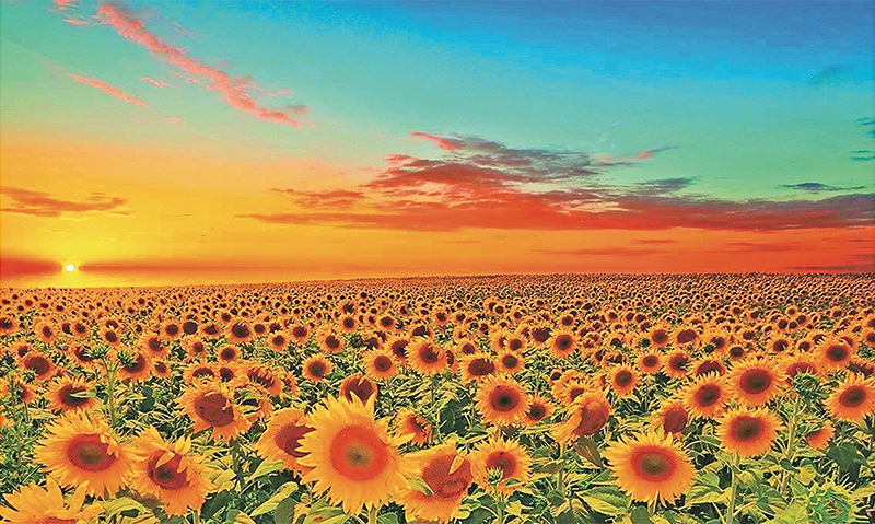 全國(guó)葵花籽產(chǎn)量約70%來(lái)自內(nèi)蒙古。圖為巴彥淖爾市向日葵種植區(qū)。 內(nèi)蒙古日?qǐng)?bào)社供圖