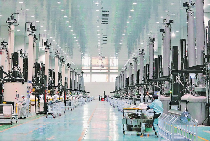 內(nèi)蒙古與時(shí)俱進(jìn)優(yōu)化能源資源開發(fā)利用方式,推動(dòng)由化石能源大區(qū)向清潔能源大區(qū)轉(zhuǎn)變。圖為位于包頭市的雙良光伏產(chǎn)業(yè)園單晶硅生產(chǎn)車間(2022年10月20日攝)。