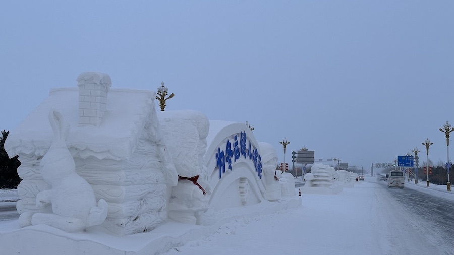 呼倫貝爾打造33組上百個巨型冰雪雕