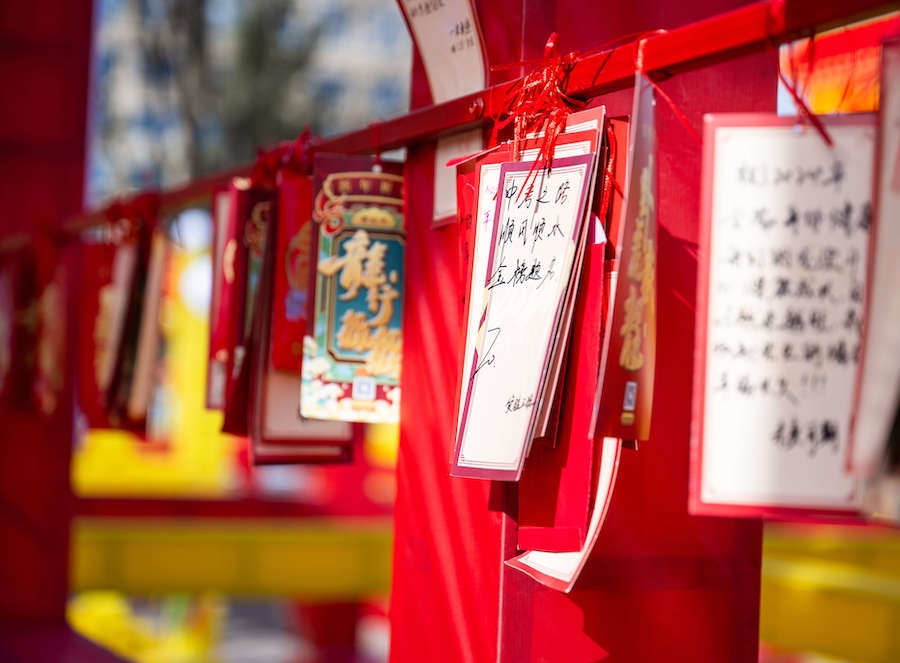 “祝福祖國:國泰平安,風(fēng)調(diào)雨順,祝福自己:生意興隆,財源滾滾”“中考之路,順風(fēng)順水,金榜題名”“平安吉祥,龍年順遂”“暴富”……