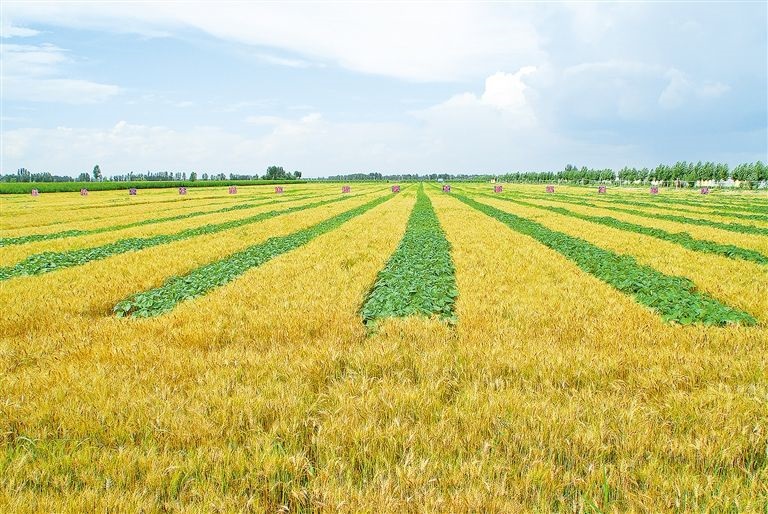 烏梁素海南岸現(xiàn)代農(nóng)業(yè)示范園區(qū)的小麥套辣椒模式。