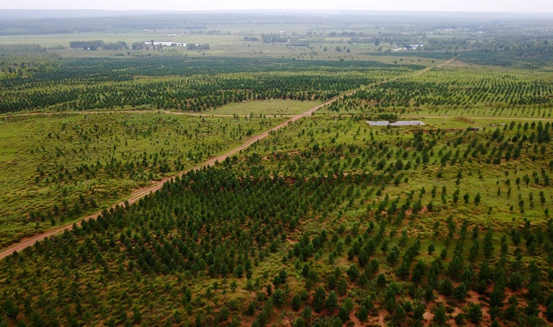內(nèi)蒙古鄂爾多斯市伊金霍洛旗初具規(guī)模的生態(tài)林場。