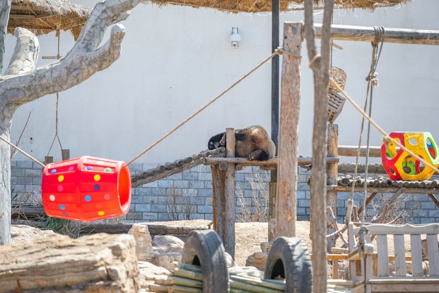 動物園里正在睡覺的大熊貓