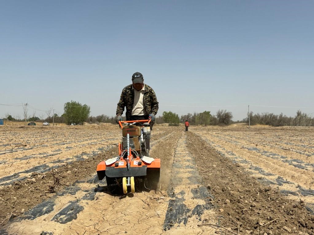 工人在新華林場育苗基地進(jìn)行旋地作業(yè)。新華社記者侯維軼 攝