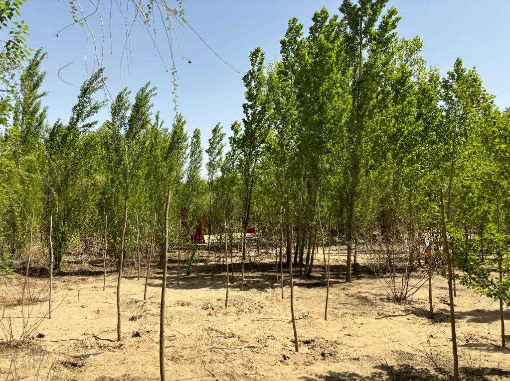 “今年,林場核心作業(yè)區(qū)周邊補(bǔ)植補(bǔ)造1萬多株新疆楊;林場其他作業(yè)區(qū)補(bǔ)植補(bǔ)種300多畝苗木,主要有四季玫瑰、紫穗槐、楊柴、梭梭等,4月下旬已全部種植完畢?!毙氯A林場副場長葛文斌說。