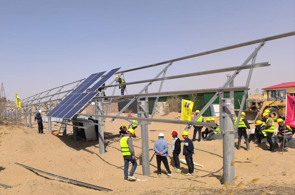 新華林場民樂作業(yè)區(qū)實施光伏治沙項目。新華社記者李云平 攝
