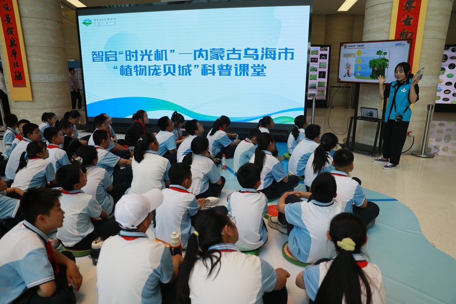 公益科普活動中,邀請大學(xué)路小學(xué)的學(xué)生參與以內(nèi)蒙古烏海市“植物龐貝城”前沿科研成果為依托開發(fā)的智啟“時(shí)光機(jī)”科普課程;開展化石形成的動手體驗(yàn)活動,在做中教,在做中學(xué),以“勞”啟智,“動”促成長;進(jìn)行“自然+環(huán)保+藝術(shù)”環(huán)保服裝創(chuàng)新設(shè)計(jì)靜態(tài)展示,同公眾一起解讀設(shè)計(jì)師的服飾設(shè)計(jì)“密碼”;聆聽“小小講解員”的科普聲,在對壯美內(nèi)蒙古的講解中,植種初心,讓德育“自然”花開。