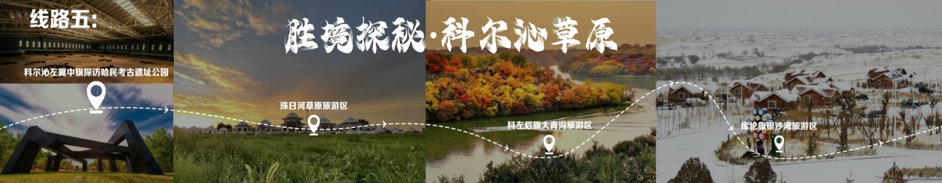 線路行程由通遼出發(fā),至科爾沁左翼中旗探訪哈民考古遺址公園,至珠日河草原旅游區(qū),再至科左后旗大青溝旅游區(qū),終點為庫倫旗銀沙灣旅游區(qū)。
