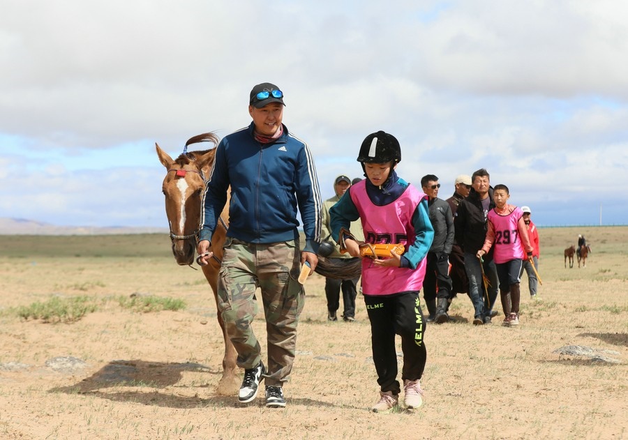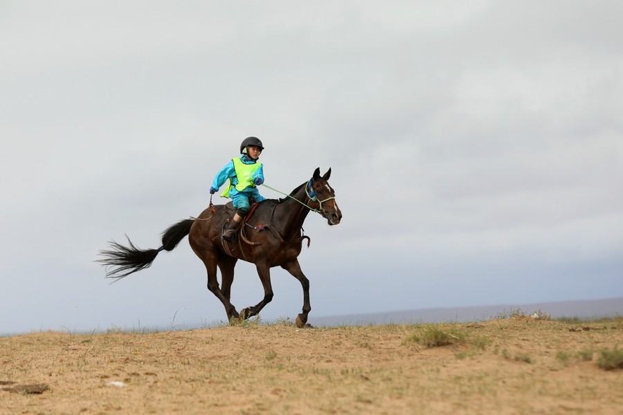 7月16日上午,內蒙古自治區(qū)第34屆草原那達慕24公里賽馬,在錫林浩特希日塔拉草原舉行。來自蘇尼特右旗的13歲少年安琪爾,騎乘叔叔青格勒家的新6歲馬,在最后百余米沖刺階段,超越對手獲得冠軍。
