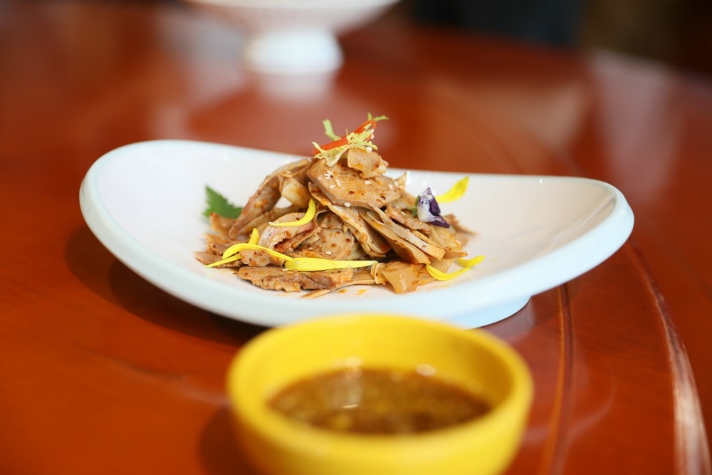 首次亮相的羊雜宴席分涼菜、熱菜、湯羹、主食等共18個菜品,包括櫻桃松露羊肝、扎蒙花拌耳舌、香辣手撕羊心、王爺精片蹄花、胡麻鹽干山尾、養(yǎng)生羊腦藜麥粥 、羊隨布拉塔番茄、草原風味毛血旺 、松茸焗羊雜煲、茶香伴侶雙寶 、黃柿子肚絲湯 、鮮羊肝披薩餅等,而首次登上羊雜宴席的羊雜燒麥也是菜品中的一大亮點。伴隨著國家級烹飪大師、羊雜宴席領銜主廚岳俊杰的介紹,“沒想到”“好吃”之類的驚嘆成為品鑒會的高頻詞。