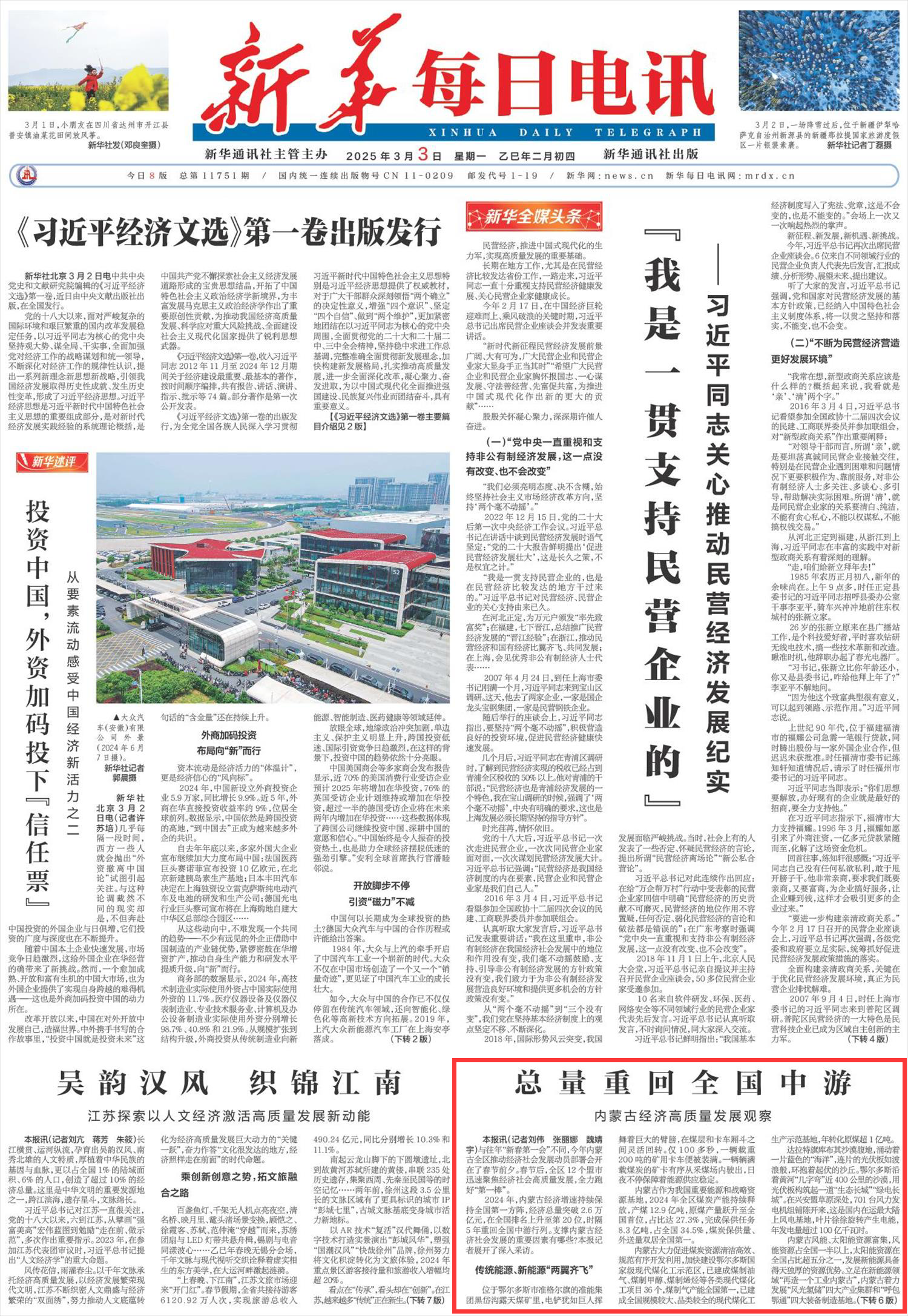 《新華每日電訊》(2025年3月3日1版)
