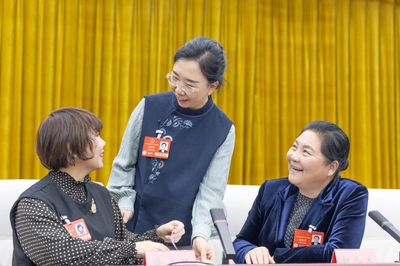 3月7日,全國人大代表胡海娟(左)建議,通過在各級學(xué)校設(shè)立專職家庭教育指導(dǎo)教師等舉措,強(qiáng)化家庭教育指導(dǎo),推動家校社協(xié)同育人,促進(jìn)青少年健康成長。記者 于濤 攝