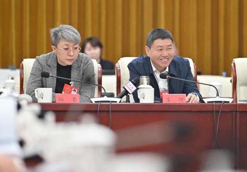 3月7日,全國人大代表莊河(右)說,中國鐵路呼和浩特局集團(tuán)有限公司將積極落實政府工作報告的相關(guān)要求,加強(qiáng)鐵路基礎(chǔ)設(shè)施建設(shè),優(yōu)化客運產(chǎn)品,實現(xiàn)多樣供給,大力發(fā)展鐵路現(xiàn)代物流,發(fā)揮好鐵路對推動經(jīng)濟(jì)社會高質(zhì)量發(fā)展的支撐保障作用。記者 馬建兵 攝