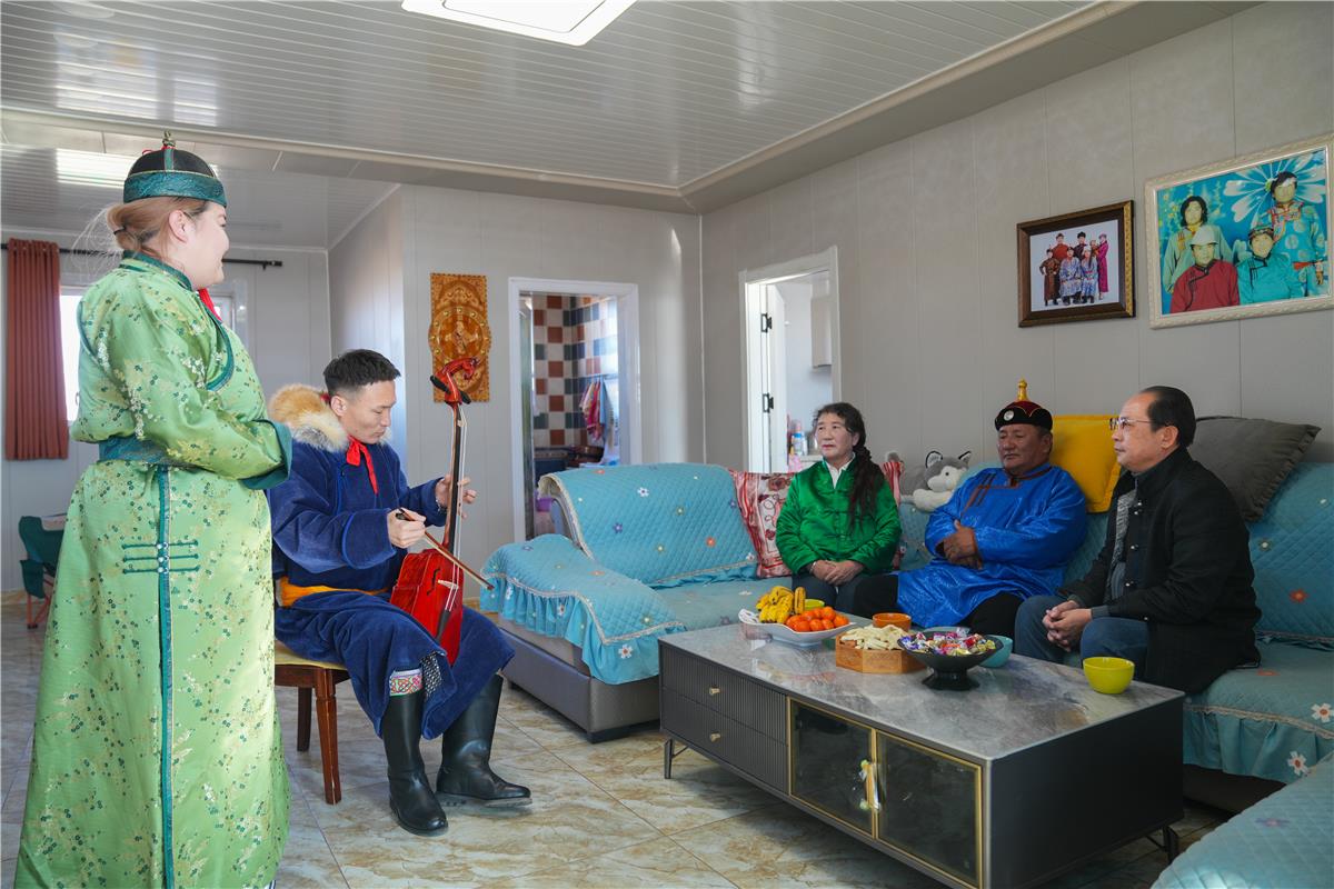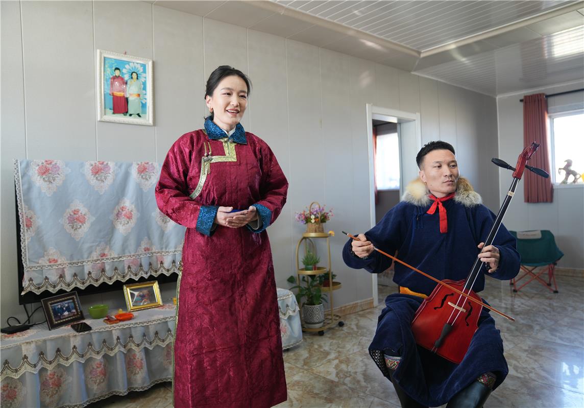 走進(jìn)蘇尼特左旗滿都拉圖鎮(zhèn)巴彥淖爾嘎查牧民格日勒的家里,傳來(lái)悠揚(yáng)的馬頭琴聲、優(yōu)美的歌聲。阿拉騰達(dá)來(lái)帶領(lǐng)幾名烏蘭牧騎隊(duì)員,開展基層演出服務(wù),不僅將歡樂送到了牧民家,更是作為政協(xié)委員,關(guān)心關(guān)注牧民的生產(chǎn)生活。
