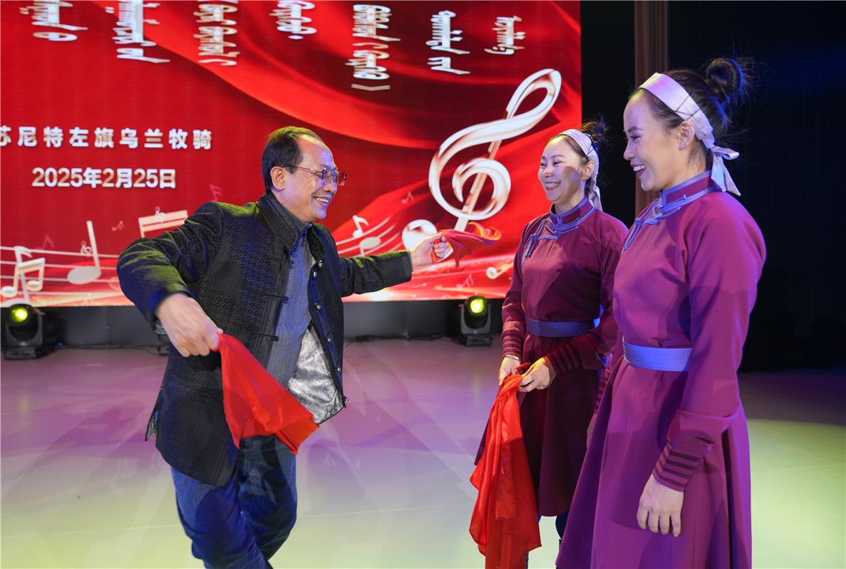 “如今,內(nèi)蒙古大地上活躍著75支像我們這樣的烏蘭牧騎隊(duì)伍,3000多名隊(duì)員每年演出超過1萬(wàn)場(chǎng)。我們將牢記‘到人民中間去’,扎根生活沃土,深入挖掘內(nèi)蒙古這片廣袤土地上厚重的歷史文化資源,努力創(chuàng)作更多接地氣、傳得開、留得下的優(yōu)秀作品,為鑄牢中華民族共同體意識(shí)、促進(jìn)民族團(tuán)結(jié)進(jìn)步貢獻(xiàn)力量?!?/p>