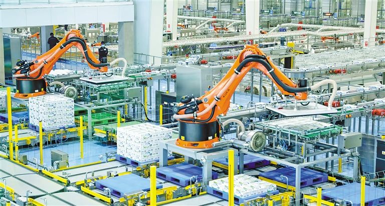 伊利健康谷液態(tài)奶全球智造基地生產(chǎn)線。(供圖:伊利集團(tuán))
