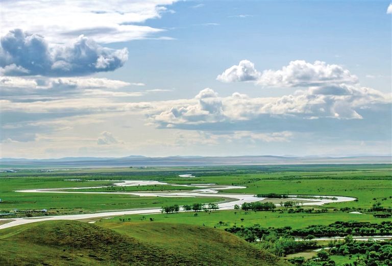 在額爾古納國家濕地公園,登上刻有“亞洲第一濕地”標志的山頂觀景臺,遠處的山巒、近處蜿蜒流淌的根河與額爾古納市容市貌盡收眼底。