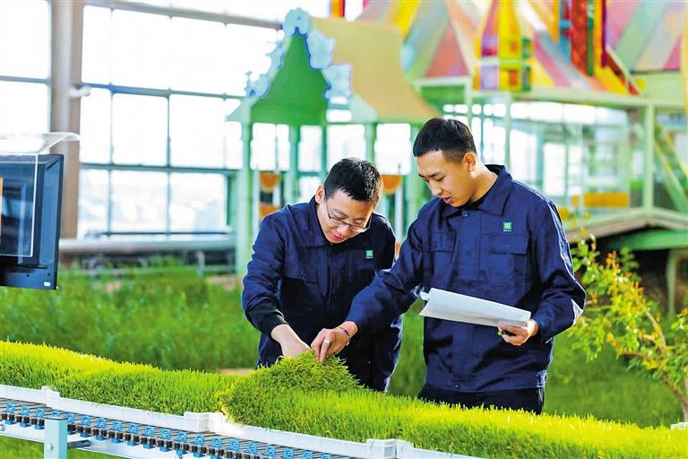 國家草業(yè)技術(shù)創(chuàng)新中心(籌)科研人員查看飼草實驗情況。