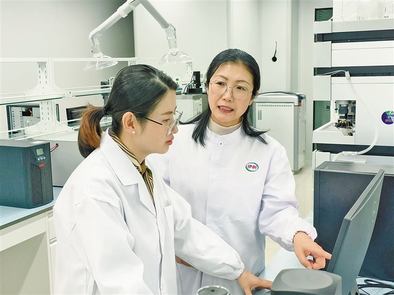 國家乳業(yè)技術(shù)創(chuàng)新中心實驗室科研人員溝通科研工作。