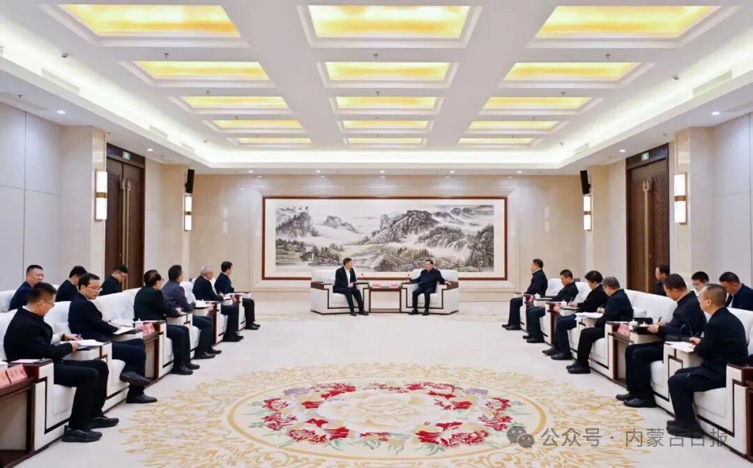 12月17日,自治區(qū)黨委書記王偉中,自治區(qū)黨委副書記、自治區(qū)人民政府主席包鋼在呼和浩特會見中國廣核集團(tuán)有限公司董事長楊長利、總經(jīng)理龐松濤一行。草原云·內(nèi)蒙古新聞網(wǎng)記者 馬建兵 攝