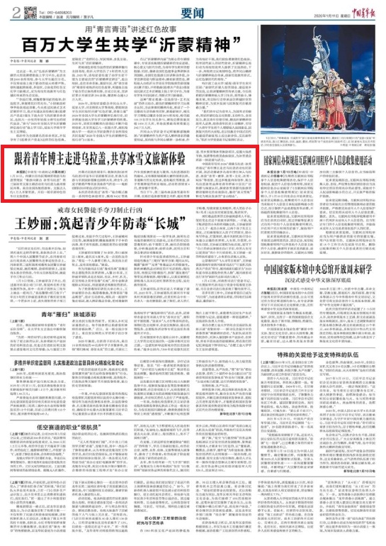 2026年1月11日,《中國青年報》第2版刊發(fā)題為《跟著青年博主走進(jìn)烏拉蓋,共享冰雪文旅新體驗》的文章,報道了1月10日,內(nèi)蒙古自治區(qū)錫林郭勒盟烏拉蓋管理區(qū)“歌游內(nèi)蒙古 冰雪烏拉蓋”第三屆冰雪文旅主題活動在烏拉蓋九曲灣景區(qū)開幕。來自全國各地的游客、文旅達(dá)人約1萬人齊聚雪原,開啟一場草原特色的冬日文旅盛宴。