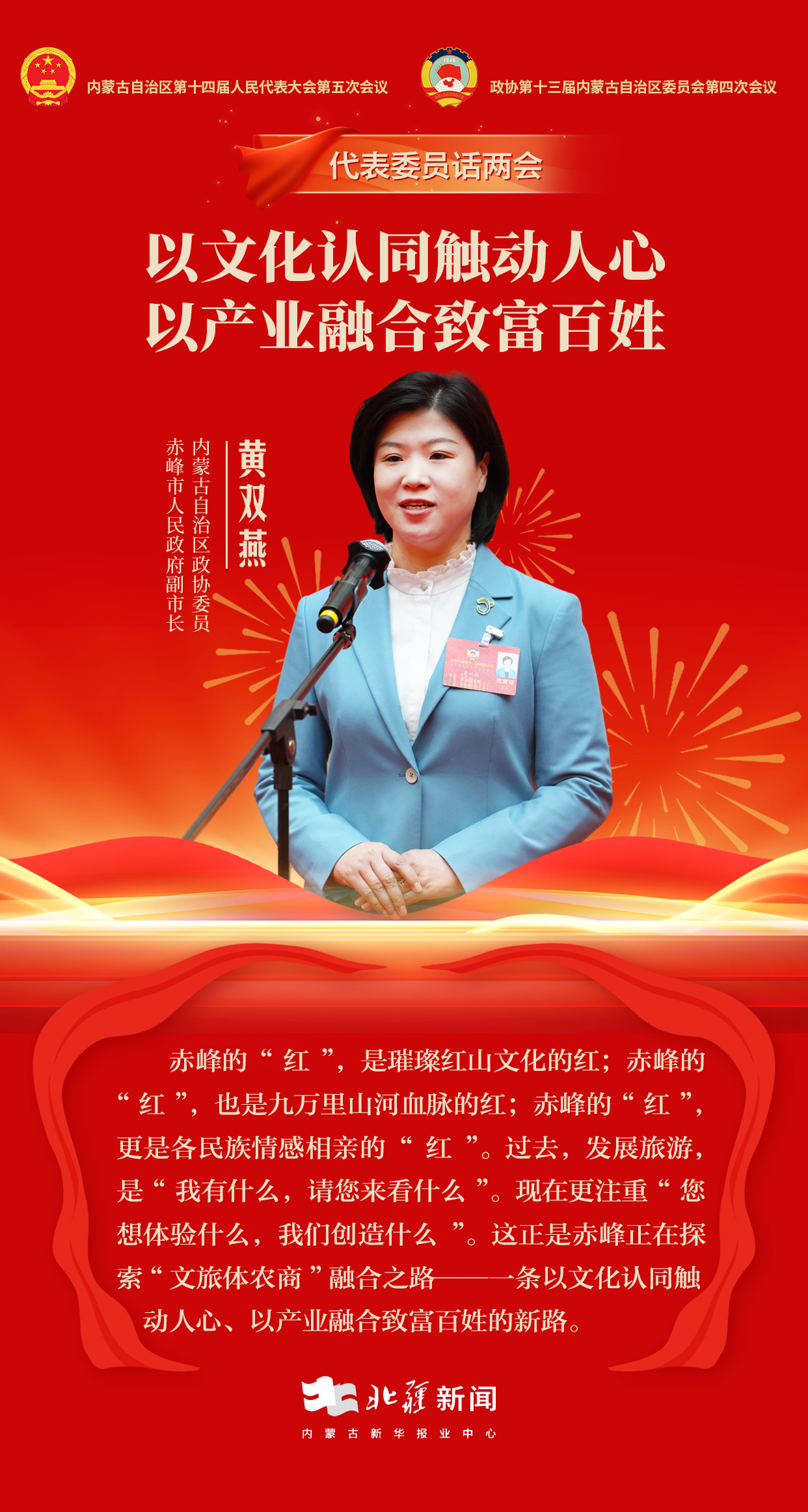 自治區(qū)政協(xié)委員、赤峰市人民政府副市長黃雙燕介紹,過去,發(fā)展旅游,是“我有什么,請您來看什么”。現(xiàn)在更注重“您想體驗什么,我們創(chuàng)造什么”。這正是赤峰正在探索“文旅體農(nóng)商”融合之路——一條以文化認(rèn)同觸動人心、以產(chǎn)業(yè)融合致富百姓的新路。
