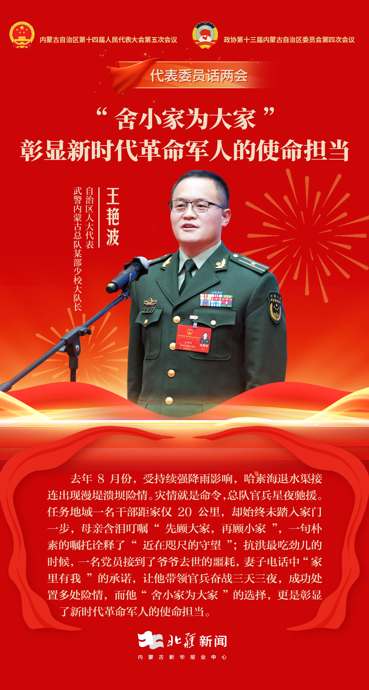 北疆新聞呼和浩特2月5日消息(記者 楊凈毓 李文華 張鑫) “作為駐守祖國北疆的武警官兵,我們心中既有練兵備戰(zhàn)的熱血記憶,更有軍民同心的溫暖感動?!?月4日,內(nèi)蒙古自治區(qū)第十四屆人民代表大會第五次會議“代表通道”上,自治區(qū)人大代表、武警內(nèi)蒙古總隊某部少校大隊長王艷波,分享了北疆衛(wèi)士練兵備戰(zhàn)、守護平安、軍民同心的難忘經(jīng)歷與使命擔當。