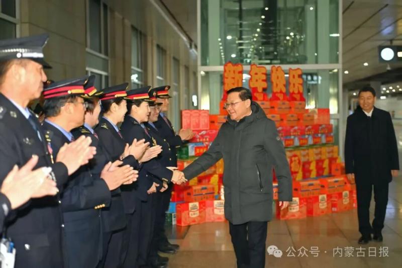 春節(jié)將至,首府的街頭張燈結(jié)彩,處處洋溢著喜慶祥和的節(jié)日氛圍。王偉中一行首先來到賽罕區(qū)一中隊(duì)交警執(zhí)勤崗點(diǎn),親切慰問正在執(zhí)勤的民警,送上新春美好祝福,感謝大家的默默堅(jiān)守和無私付出。王偉中叮囑大家注意防寒保暖,以良好狀態(tài)守護(hù)城市平安暢通。在萬正廣場(chǎng)環(huán)衛(wèi)站,王偉中一行看望慰問辛勤工作的環(huán)衛(wèi)工人。王偉中說,你們是城市的“美容師”,每天起早貪黑、風(fēng)雨無阻,用辛勤勞動(dòng)換來了城市的清潔美麗,大家辛苦了。有關(guān)部門要多關(guān)心他們的工作和生活,細(xì)化關(guān)愛舉措,健全保障機(jī)制,在全社會(huì)營造尊重環(huán)衛(wèi)工人、珍愛生活環(huán)境的良好氛圍。隨后,王偉中一行來到呼和浩特火車東站,仔細(xì)詢問春運(yùn)期間人流車流、安全保障等情況。王偉中強(qiáng)調(diào)要精準(zhǔn)把握春節(jié)群眾出行規(guī)律,加強(qiáng)運(yùn)力調(diào)配、客流疏導(dǎo)和秩序維護(hù),深入排查整治安全隱患,切實(shí)提升服務(wù)質(zhì)量,讓群眾出行更安全、更舒心。