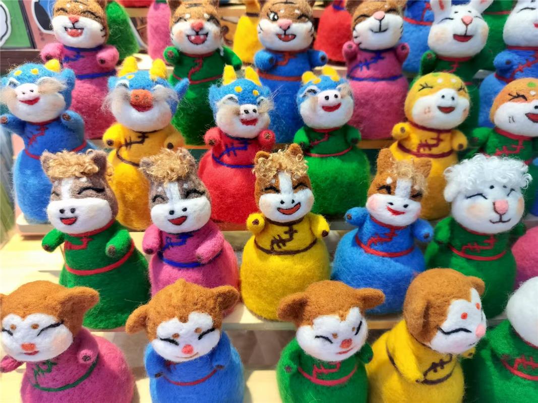 在呼和浩特市回民區(qū)寬巷子的一家非遺手作店內(nèi),來自青島的游客王藝女士,被展臺上憨態(tài)可掬的十二生肖蒙古族氈繡擺件深深吸引。“這些小動物太可愛了,每一個都自帶草原的靈氣!”她告訴記者,一定要把這份來自草原的心意,當(dāng)作新年禮物帶回青島送給家人。