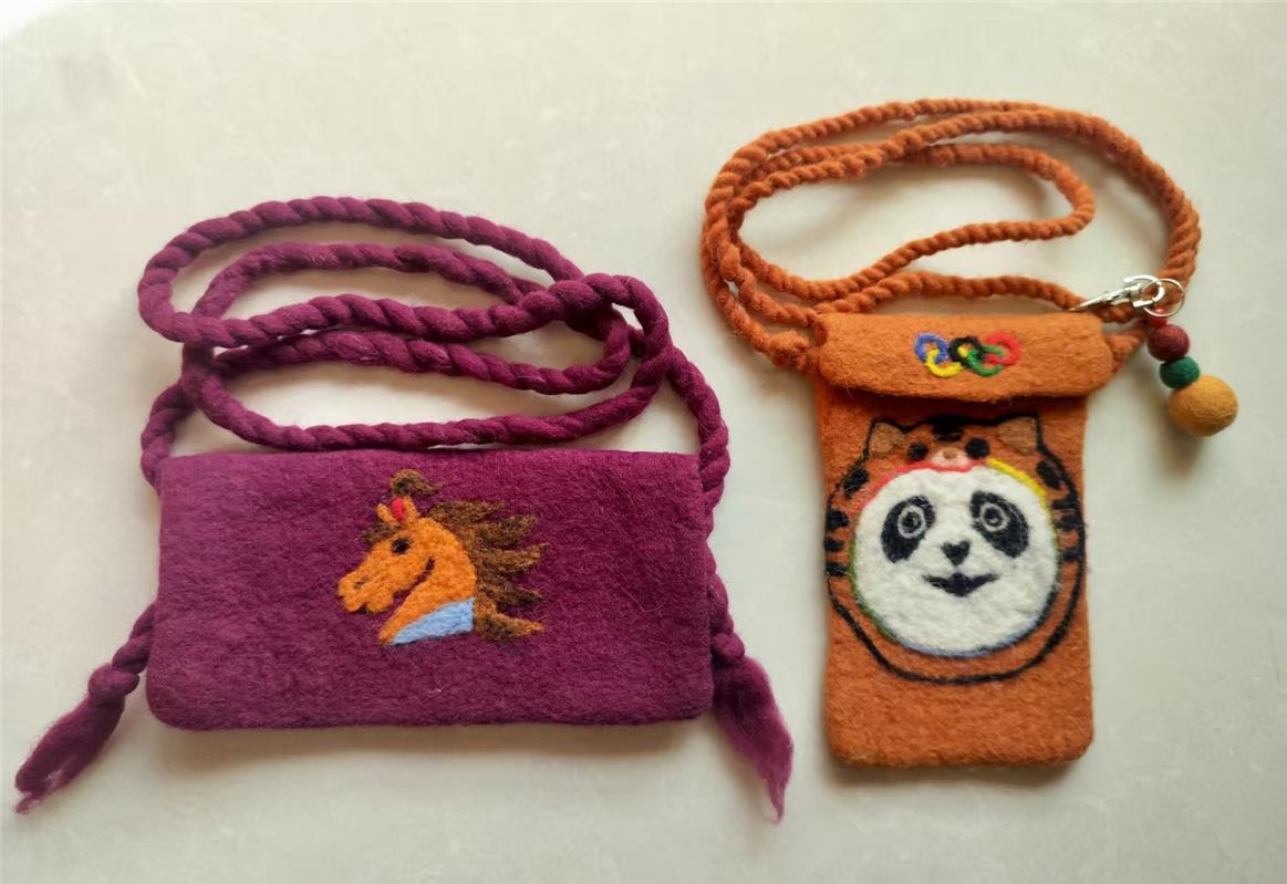 這套擺件采用的蒙古族氈繡技藝是國家級非物質(zhì)文化遺產(chǎn),多以駝絨、羊毛、馬鬃為原料,以縫制、壓邊等手法繡于毛氈之上,成品兼具實用性與藝術(shù)性。近年來,該技藝衍生出冰箱貼、擺件、杯墊、背包等精致便攜的文創(chuàng)產(chǎn)品,讓古老技藝在新時代煥發(fā)勃勃生機。
