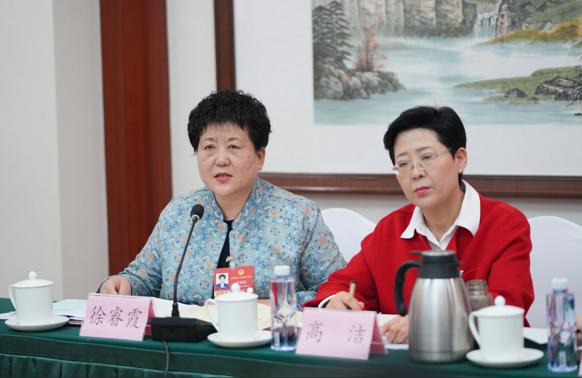 3月5日,住內(nèi)蒙古全國政協(xié)委員徐睿霞(左)建議,設(shè)立烏梁素海生態(tài)保護與系統(tǒng)治理專項基金,開展跨學(xué)科聯(lián)合攻關(guān),重點研發(fā)低成本、生態(tài)友好的底泥污染治理與資源化利用技術(shù)。草原云記者